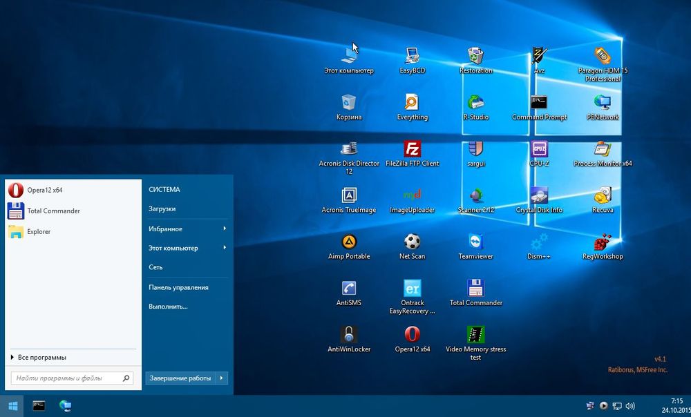 Windows PE 10 1.2021 + 3.2020 / 8.1 x64 3.5 / 8 v2.8.b7 / 7 v1.0.4b от Ratiborus — это универсальная загрузочная среда, собранная на основе официальных инструментов Microsoft для предустановки и восстановления систем. Сборка включает в себя множество утилит для диагностики, резервного копирования, восстановления данных, сброса паролей и обслуживания защищённых системных разделов. Предназначена как для домашнего, так и для профессионального использования.