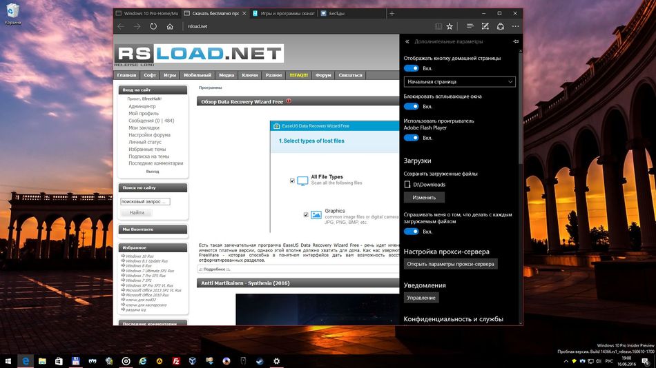 Работа с Windows 10