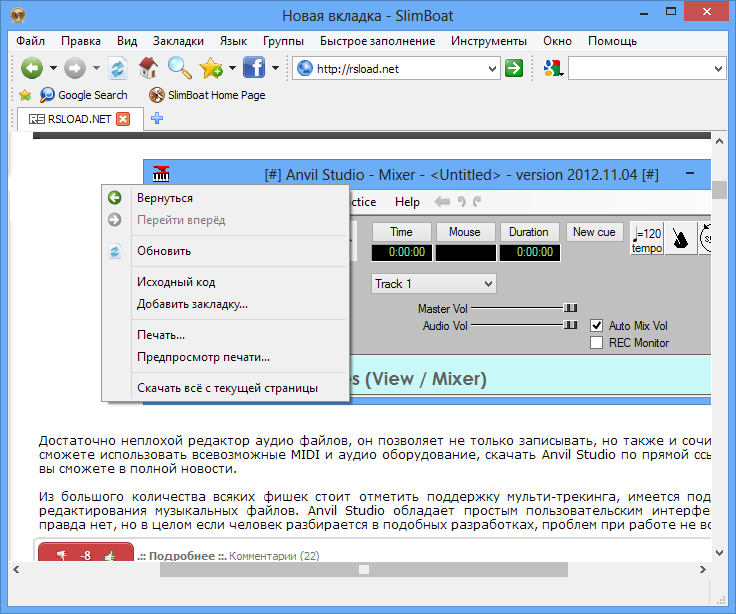 Работа с браузером SlimBoat не вызывает сложностей даже у начинающих пользователей. При первом запуске программа предлагает импортировать закладки, историю и пароли из установленных браузеров, что упрощает переход на новую платформу. Интерфейс построен по классической схеме: строка адреса сверху, панель вкладок под ней, панель инструментов с базовыми функциями — переход назад/вперед, обновление, домой. Поддержка горячих клавиш позволяет ускорить навигацию, а контекстное меню обеспечивает быстрый доступ к часто используемым действиям, таким как копирование ссылки, открытие в новой вкладке или сохранение изображения.