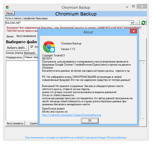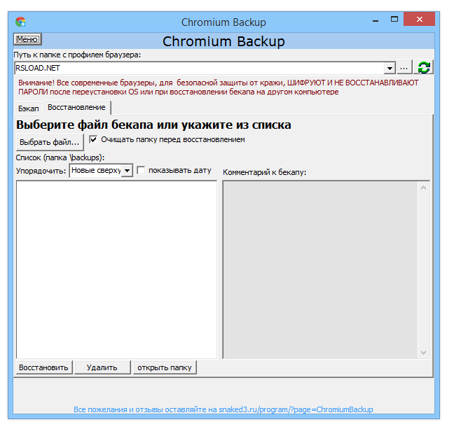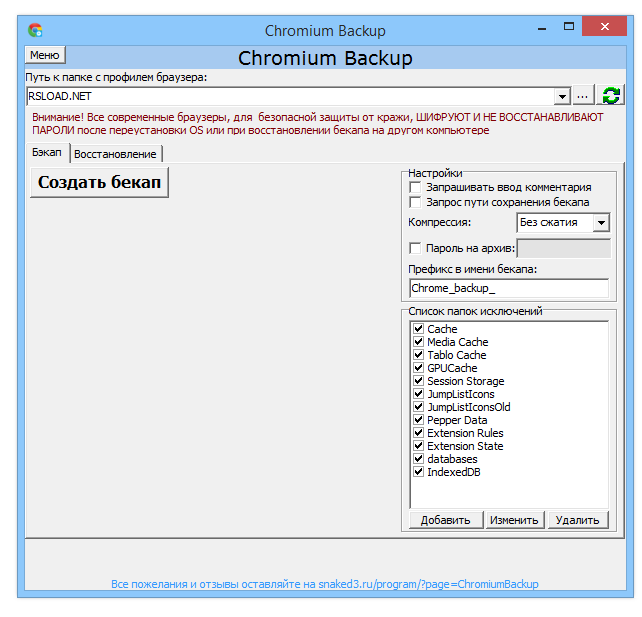 Работа с Chromium Backup