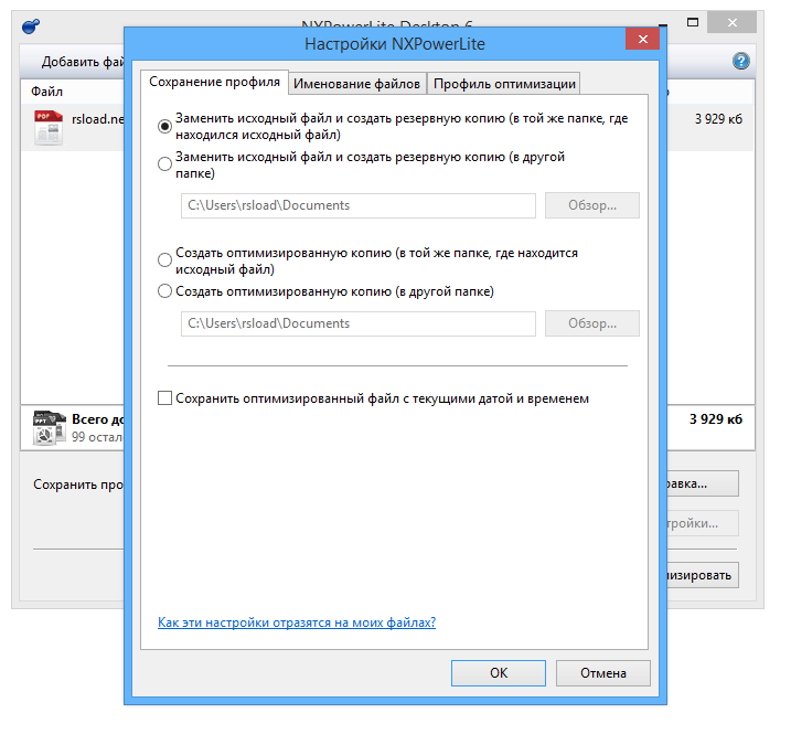 Работа с NXPowerLite Desktop
