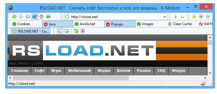 - Низкое потребление системных ресурсов, что делает K-Meleon идеальным для Windows XP и других устаревших систем.