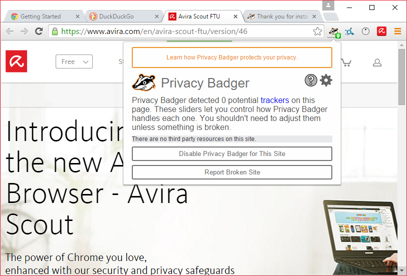 - Интегрированы расширения Privacy Badger и HTTPS Everywhere для автоматической активации защищенного соединения и блокировки трекеров.