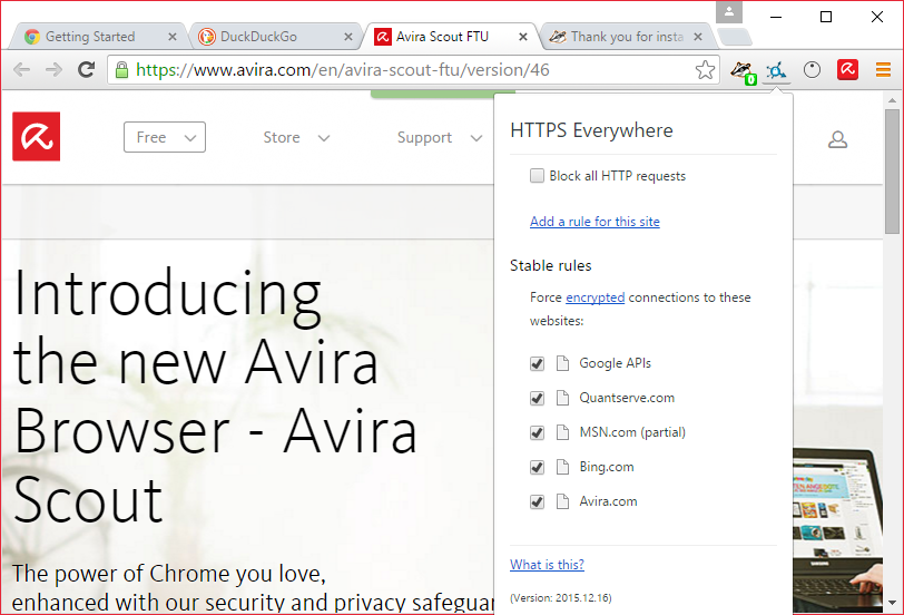 Avira Scout 17.5.3071.2851 — это безопасный браузер на базе Chromium, разработанный компанией Avira Operations. Программа ориентирована на защиту пользователей в интернете, интегрируя в себя встроенные инструменты приватности и фильтрации угроз. Благодаря предустановленным расширениям, браузер обеспечивает безопасный серфинг без необходимости дополнительно настраивать защиту.