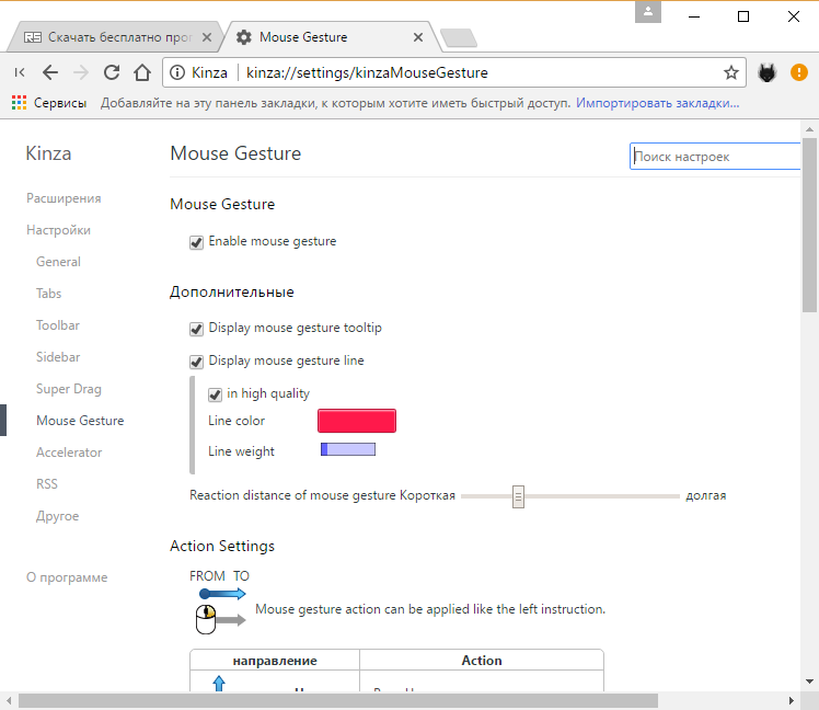 - Гибкие настройки поведения жестов, сочетаний клавиш и вкладок