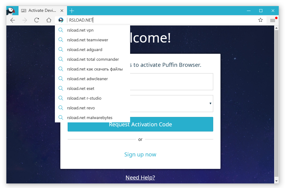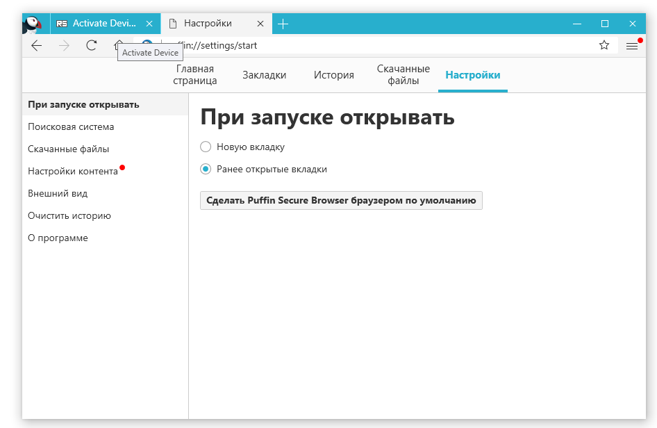 Работа с Puffin Browser / Puffin Secure Browser