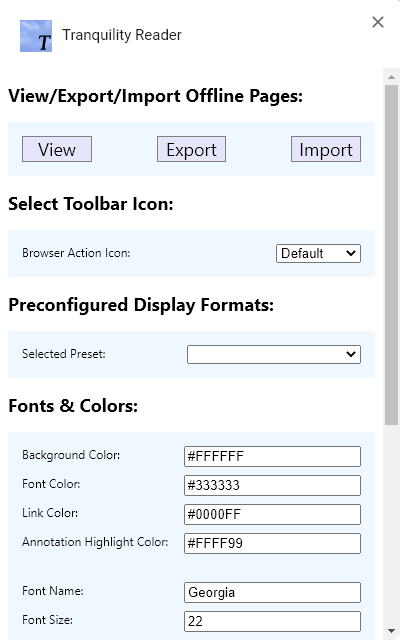 Использование Tranquility Reader 3.0.21 не требует специальных навыков. После установки расширения в браузер, на любой странице активируется нажатием на значок в панели инструментов. Правый клик по иконке открывает меню с настройками, где можно выбрать предпочитаемый режим отображения. Доступны различные цветовые схемы, включая режим для уменьшения усталости глаз при чтении в темноте. Можно настроить межстрочный интервал, размер шрифта и тип гарнитуры. Также предусмотрена возможность сохранения конфигураций и их переноса между устройствами, что особенно полезно при синхронизации рабочего и домашнего компьютера. Такая гибкость делает чтение в интернете персонализированным процессом.