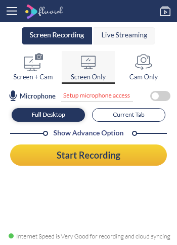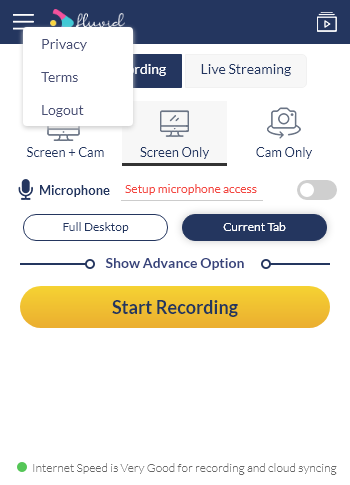После установки расширения Fluvid в Chrome рядом с адресной строкой появляется кнопка с его логотипом. При первом запуске требуется авторизация через Facebook или Google, что упрощает процесс настройки и ускоряет вход. В интерфейсе доступны два основных режима: запись экрана и стриминг в реальном времени, переключение между ними происходит быстро и без перезагрузки браузера. Для корректной работы приложение запрашивает разрешение на доступ к микрофону и камере. Пользователь может выбрать, что именно записывать — только экран, только веб-камеру или оба источника одновременно. Также доступен выбор между захватом всего рабочего стола или активной вкладки браузера. Трансляции поддерживают до 50 участников, что делает инструмент пригодным для небольших конференций или вебинаров. Записанные материалы можно экспортировать, редактировать и просматривать аналитику просмотров. Расширение не накладывает водяные знаки на выходное видео, что повышает качество результата.