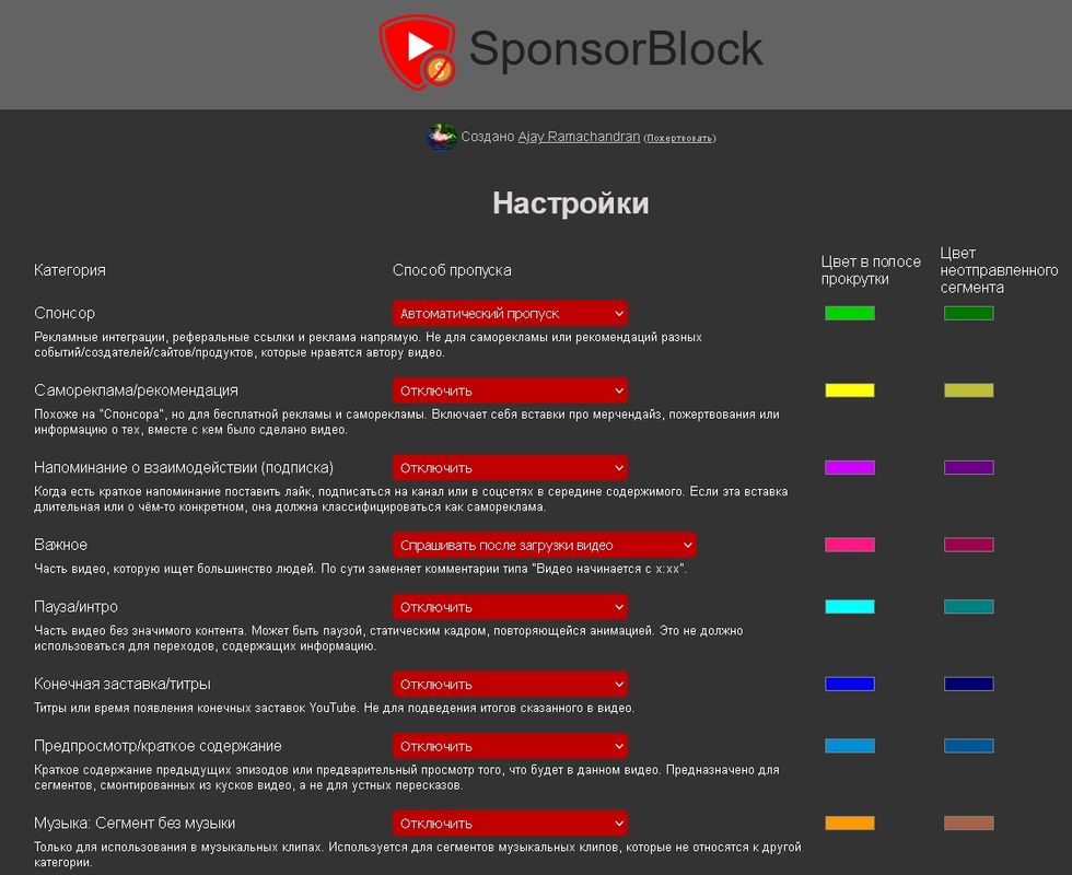 Работа с SponsorBlock для YouTube