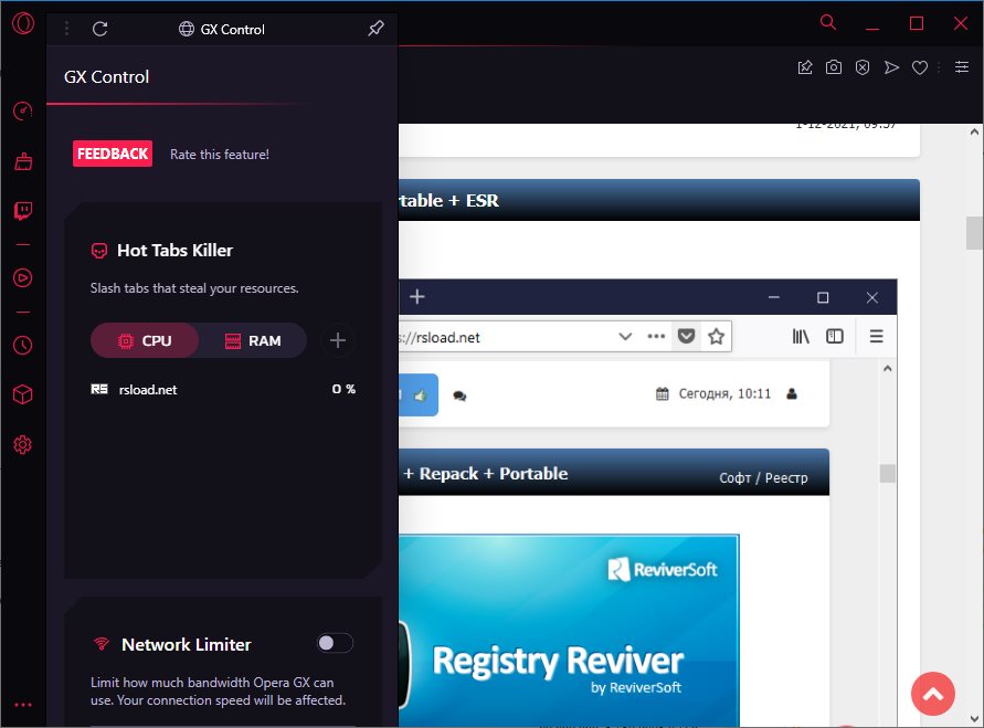 Opera GX — это специальная версия популярного браузера, разработанная специально для геймеров. Браузер сочетает в себе стильный темно-красный дизайн, функции ограничения ресурсов системы и встроенные игровые сервисы. Программа доступна в портативной версии для 64-битных систем и предлагает удобные инструменты для оптимизации производительности и персонализации интерфейса.
