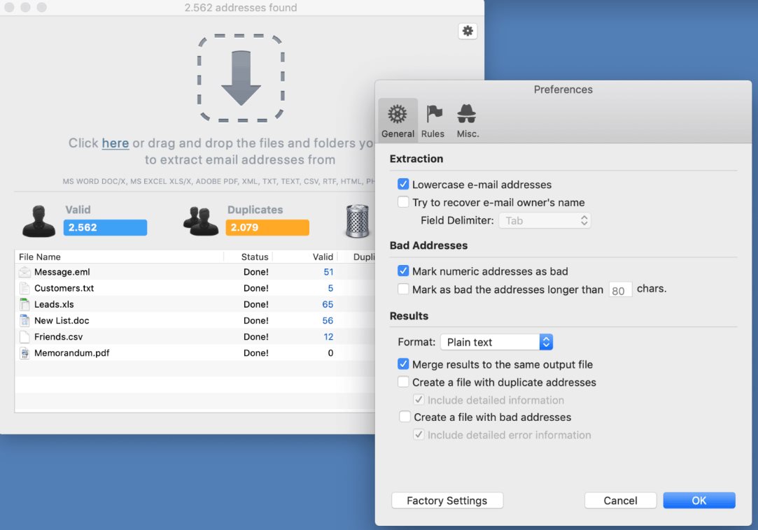 - Очень высокая скорость извлечения электронных адресов