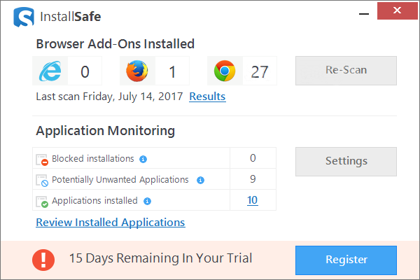 Программа InstallSafe разработана компанией ReviverSoft как специализированный менеджер расширений для веб-браузеров. Она поддерживает совместимость с Internet Explorer, Google Chrome и Mozilla Firefox, обеспечивая комплексный контроль над плагинами. После установки приложение работает в фоне, не нагружая систему и не мешая повседневной работе. Пользователь может быть уверен, что каждая попытка установки нового аддона будет сразу замечена.