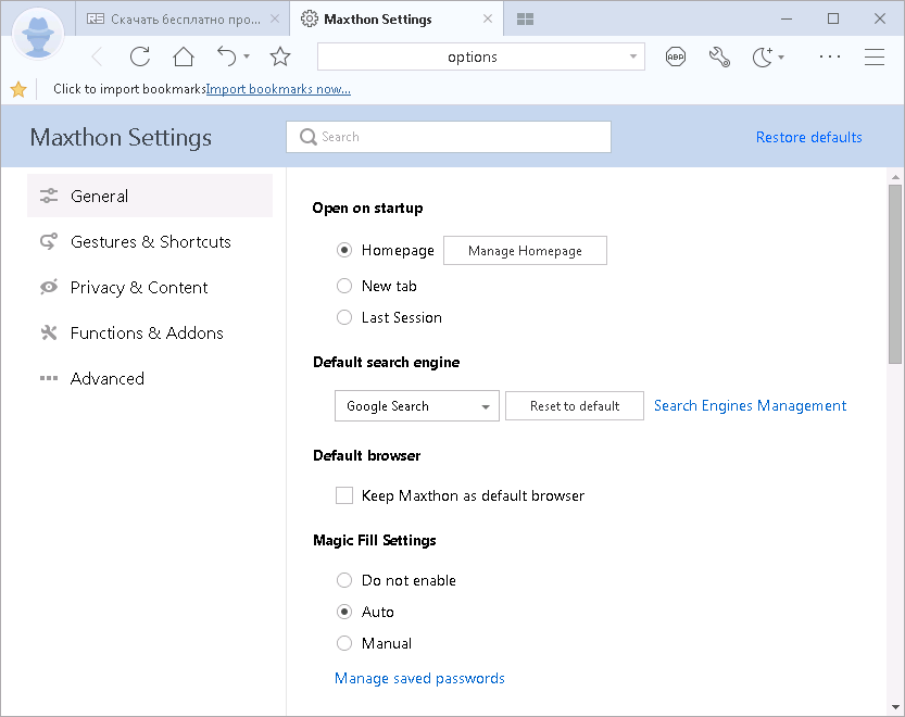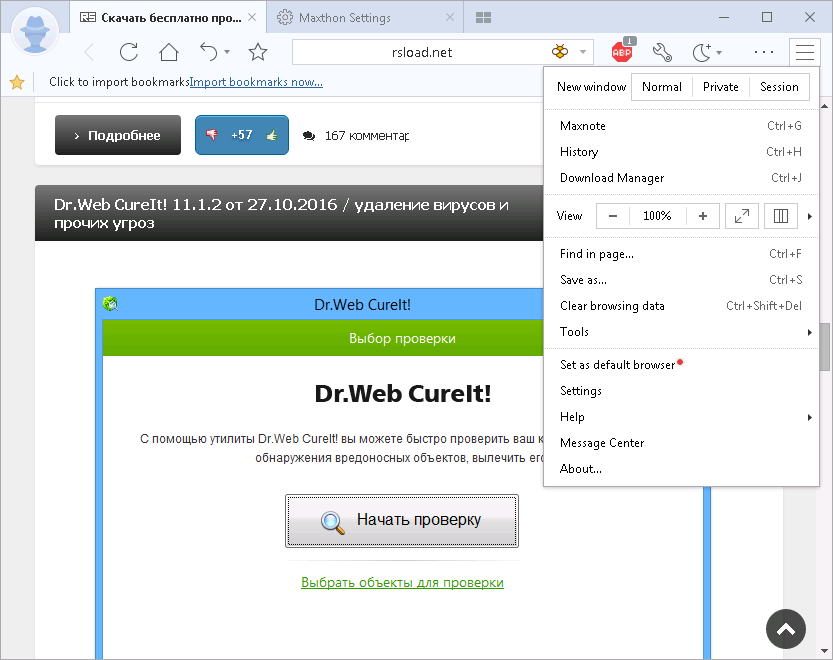 Работа с Maxthon Browser
