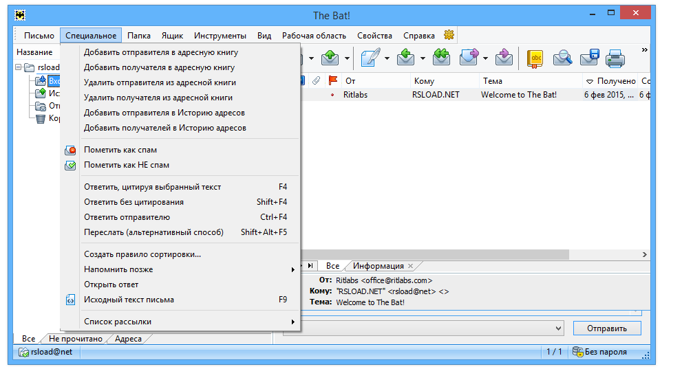 Работа с The Bat! Professional