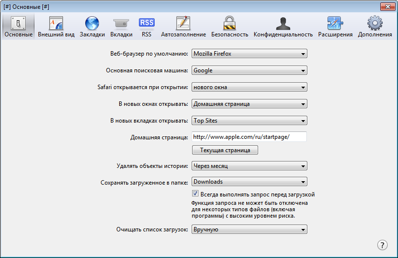 Работа с Apple Safari