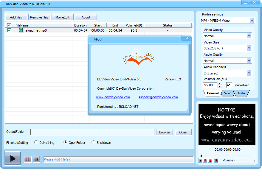 Работа с DDVideo Video to MP4 Gain