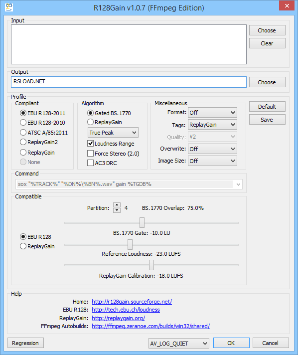 R128Gain 1.0.11 — это компактное программное обеспечение для нормализации аудиофайлов по стандарту EBU R128, разработанное на базе таких известных инструментов, как ffmpeg и SoX. Утилита доступна в 32- и 64-битных версиях, отличается минимальными требованиями к системе и отсутствием необходимости в установке. Программа поддерживает работу с широким спектром аудиоформатов, обеспечивая стабильный уровень громкости без искажений.