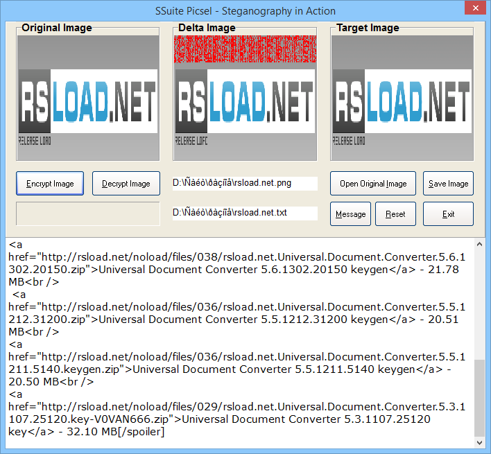 SSuite — Picsel Security позволяет скрывать информацию в графических файлах без потерь в качестве изображения.