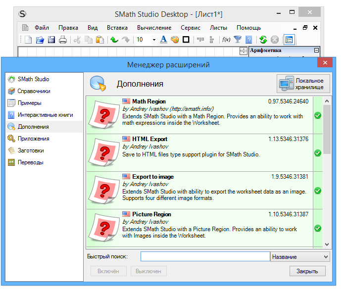 - SMath Studio совместима с desktop-версиями Windows, а также имеет адаптацию под другие платформы, включая облегчённые portable-сборки.
