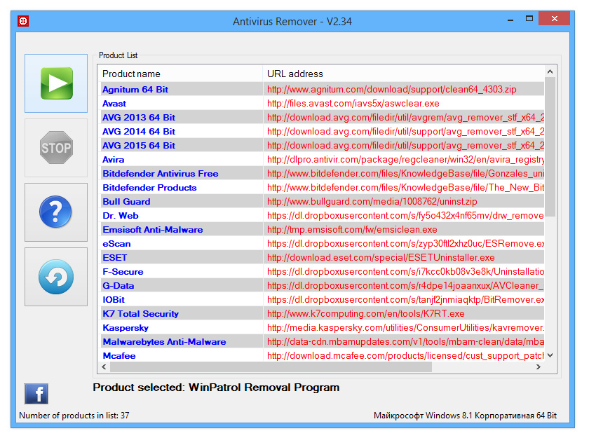 - Автоматически загружает соответствующий деинсталлятор для выбранного продукта