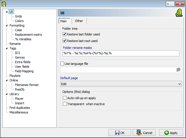 Пользоваться The GodFather предельно просто: после запуска указывается папка или логический диск, который нужно просканировать. По завершении поиска отображается список найденных музыкальных файлов, где можно вручную или автоматически отредактировать теги, изменить название или структуру папок. Для переименования используется гибкая система масок, позволяющая выстраивать путь вроде «Исполнитель\Альбом\Номер — Название.mp3». Также поддерживается массовое изменение полей, что особенно полезно при работе с большими коллекциями. При необходимости возможна перезапись файлов в другом формате — здесь на помощь приходит встроенный движок на базе LAME, обеспечивающий высокое качество кодирования.