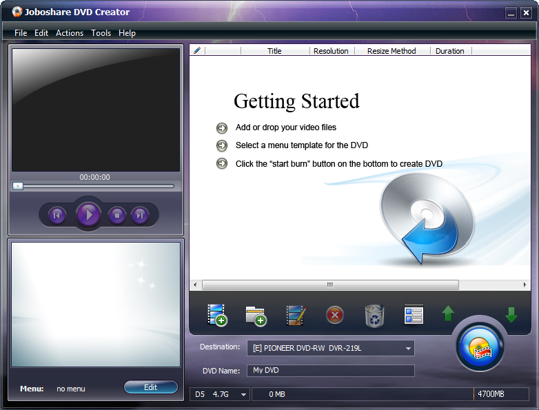 Joboshare DVD Creator позволяет превратить любые видеозаписи в профессионально оформленные DVD с функцией воспроизведения на бытовых устройствах.