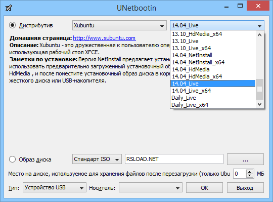 Работа с UNetbootin