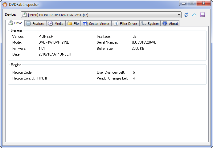 Программа распространяется бесплатно и не требует активации. Несмотря на скромный функционал, она решает узкий круг задач с высокой эффективностью. Подходит для системных администраторов, мультимедийных специалистов и пользователей, интересующихся техническими характеристиками своих устройств. DVDFab Inspector 1.3.0.0 x64 — это надёжный инструмент для диагностики, который можно использовать без опасений за стабильность системы.