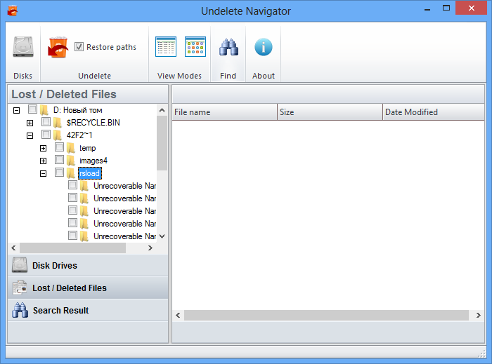 Работа с Undelete Navigator