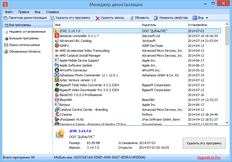 - Поддерживает сортировку установленных программ по имени, дате установки и размеру