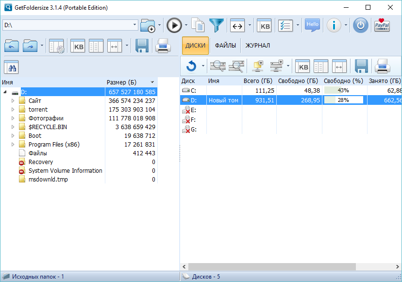 GetFoldersize — это компактное приложение для анализа объёма папок и подпапок на жёстких дисках и внешних накопителях, позволяющее быстро выявить, какие файловые структуры занимают больше всего места. Программа работает без установки, поддерживает русский интерфейс и подходит для пользователей любого уровня. С её помощью можно оперативно провести ревизию дискового пространства и оптимизировать хранение данных.