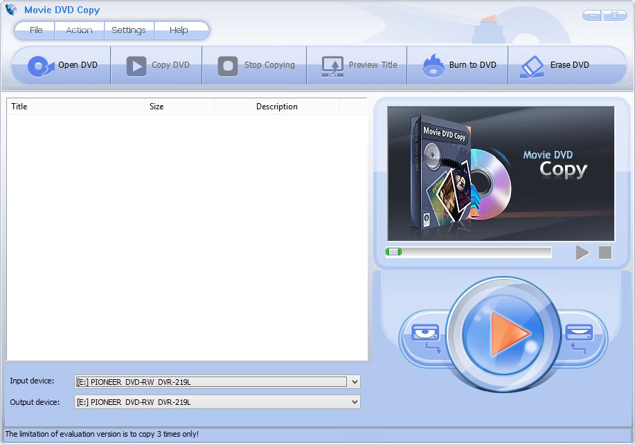 Movie DVD Copy 1.4.4 представляет собой инструмент, ориентированный на копирование DVD-фильмов с оригинальных дисков на другие носители или в образы на жёстком диске. Программное обеспечение поддерживает множество функций, включая создание копий с защитой от копирования, преобразование DVD-9 в DVD-5, а также расшифровку региональных ограничений. Это делает её полезной как для домашнего использования, так и для архивирования коллекций фильмов. Интерфейс остаётся простым и интуитивно понятным, что позволяет быстро освоить процесс даже новичкам.