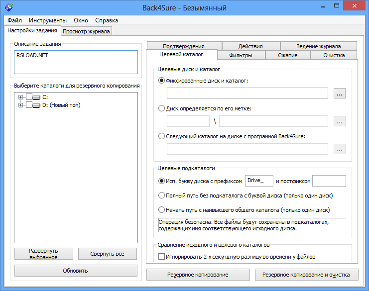 - Позволяет копировать данные на внешние носители, сетевые папки и FTP-серверы