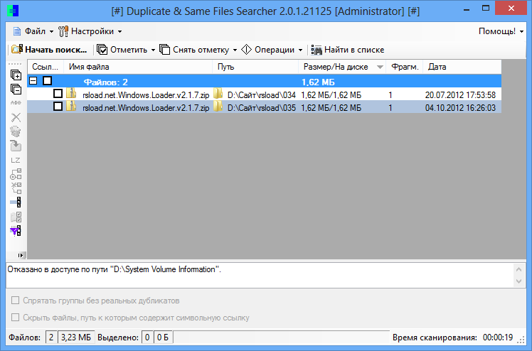 Duplicate & Same Files Searcher умеет заменять дубликаты жесткими ссылками NTFS — функция, редко встречающаяся в аналогичных утилитах.