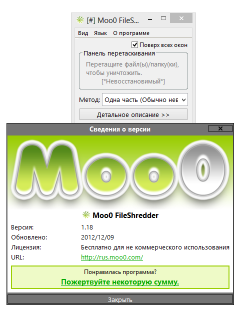 Работа с Moo0 FileShredder