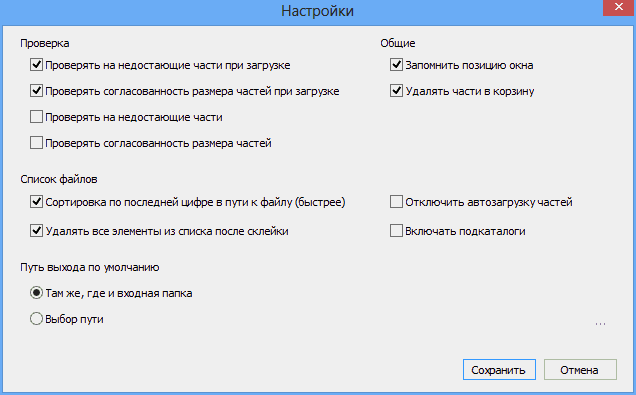 Использование программы не вызывает затруднений. Достаточно перетащить необходимые части в главное окно, чтобы они появились в списке с указанием исходного пути и состояния. Пользователь может вручную корректировать последовательность файлов, перемещая их вверх или вниз. После выбора выходной папки можно начинать процесс объединения — достаточно нажать одну кнопку. File Joiner проверит целостность фрагментов, особенно если включена опция проверки недостающих частей, и выполнит склейку без ошибок. Работа ведётся в фоновом режиме с отображением прогресса.