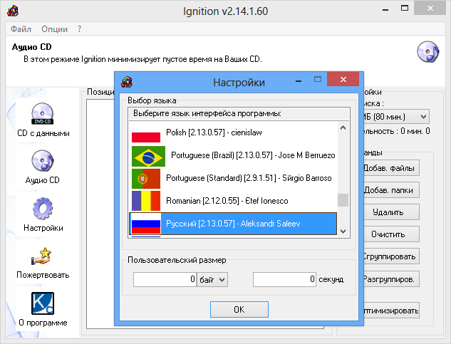 Ignition — это утилита, разработанная компанией KC Softwares, предназначенная для записи цифровых данных на оптические носители. В отличие от многих аналогов, программа не перегружена функциями, которые редко используются. Её основная задача — простая и быстрая запись файлов, музыки и образов дисков. Поддержка русского языка делает её доступной для широкой аудитории, особенно для тех, кто не желает разбираться в интерфейсе на английском. Приложение работает в системах Windows и не требует сложной установки.