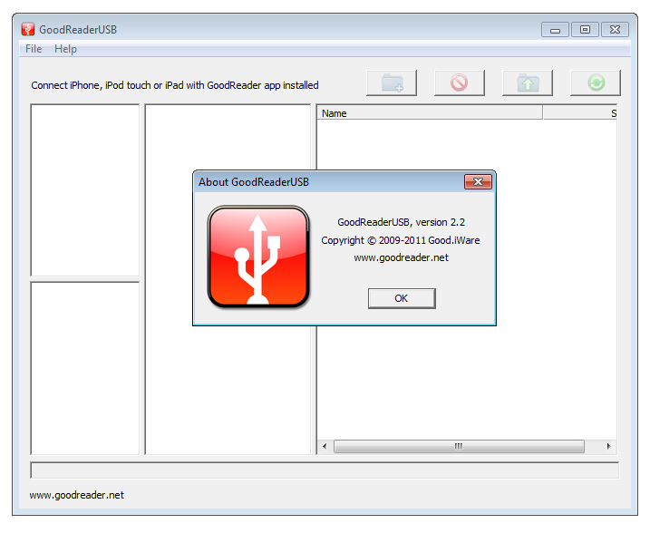 GoodReaderUSB 2.5 — это компактная и простая в использовании утилита для передачи данных с Apple-устройств на компьютер под управлением Windows. Программа позволяет быстро переносить музыку, фильмы, документы и другие файлы без необходимости сложной настройки. Для начала работы требуется лишь установить приложение GoodReader на iPhone или iPad и запустить программу на ПК.