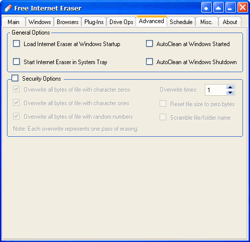 После запуска приложение открывается в одном окне с несколькими вкладками, каждая из которых отвечает за определённый тип данных. Вкладка Windows позволяет стереть список недавно использованных документов, временные файлы и журналы автозагрузки. Раздел Browser включает инструменты для очистки истории, паролей и автозаполнения в браузерах. Пользователь может настроить детальные параметры очистки, выбрав конкретные компоненты для удаления. Планировщик заданий позволяет настроить автоматический запуск очистки по расписанию, что удобно для регулярного поддержания приватности. Также доступна функция быстрой очистки, которая устраняет наиболее распространённые следы за несколько кликов.