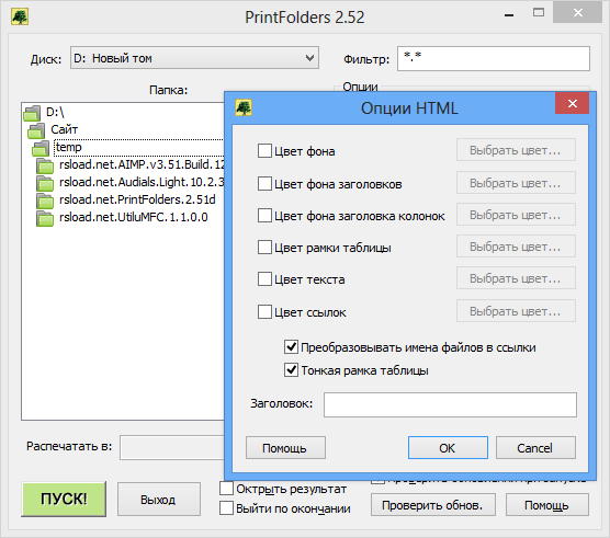 - Возможность экспорта структуры папок в HTML и TXT форматы