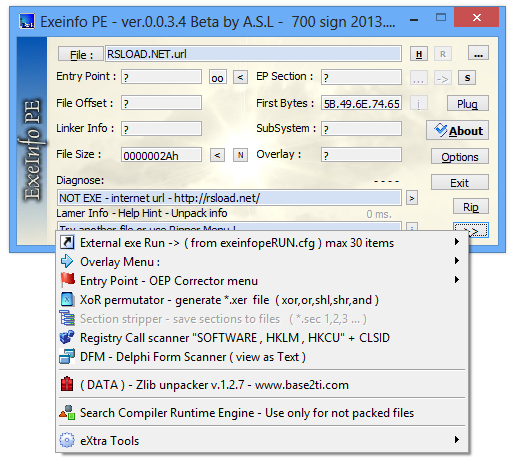 Работа с Exeinfo PE