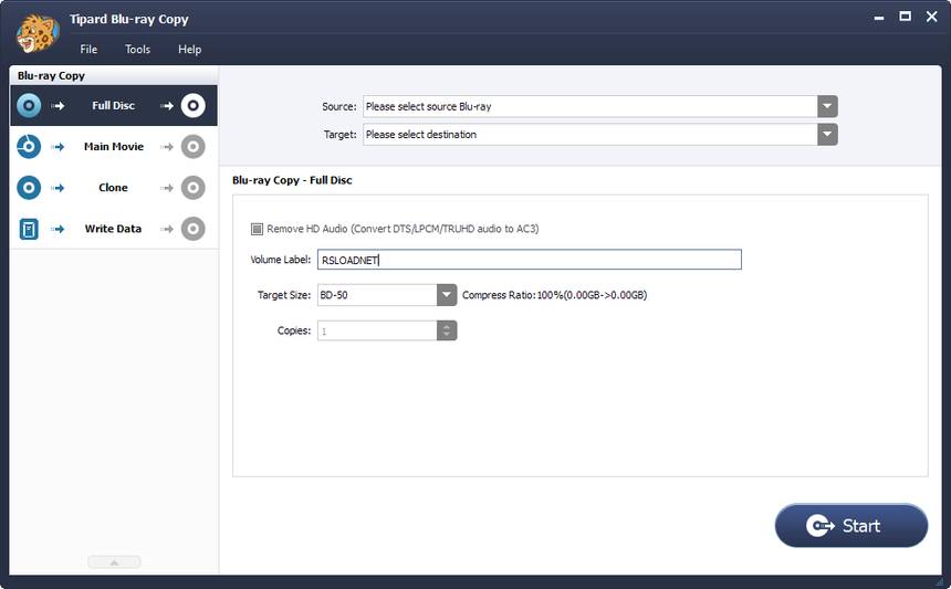 Tipard Blu-ray Copy — это программное решение, разработанное для создания точных копий дисков формата Blu-ray. Приложение поддерживает копирование как полного содержимого диска, так и его отдельных частей, включая выбор нужных звуковых дорожек и субтитров. Интерфейс программы выдержан в простой и понятной стилистике, что облегчает навигацию даже для новичков. Несмотря на отсутствие официальной русской локализации, структура меню интуитивно понятна и не требует глубоких знаний.