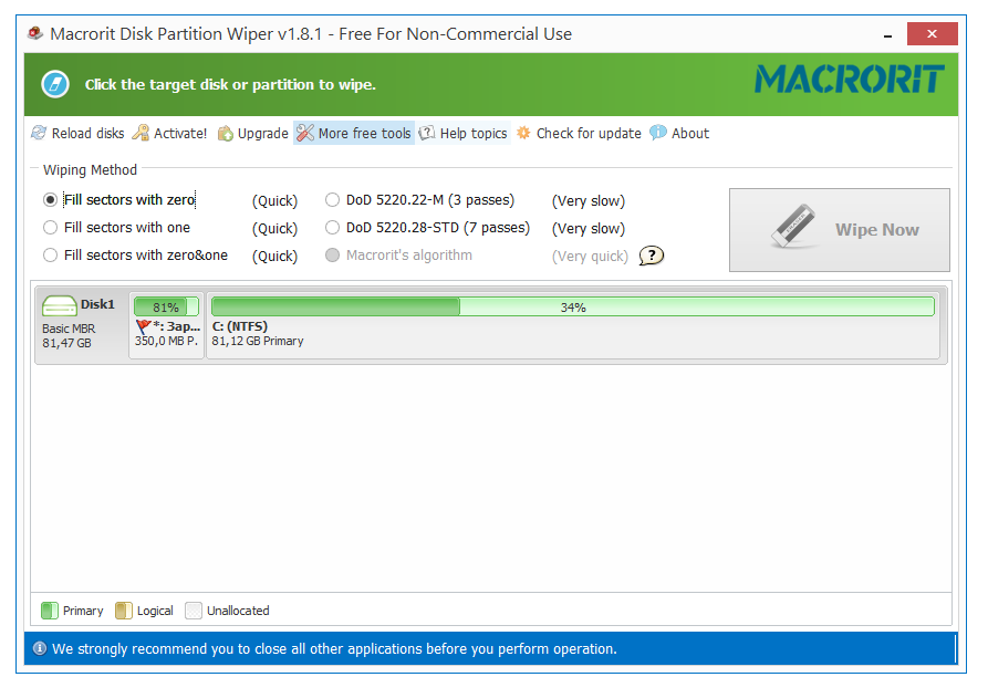 Даже профессиональные инструменты восстановления данных не смогут вернуть информацию, стёртую с помощью Macrorit Disk Partition Wiper.
