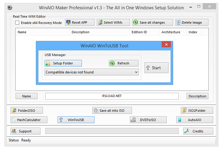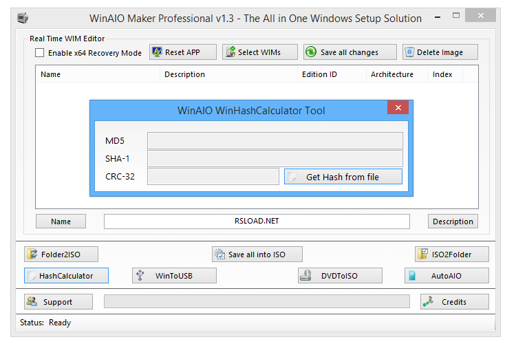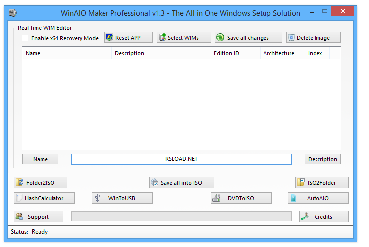 WinAIO Maker Professional 1.3 — это бесплатная портативная утилита, предназначенная для создания универсальных установочных образов Windows. Программа объединяет несколько версий операционной системы в один AIO-образ, поддерживая как 32-bit, так и 64-bit редакции. Это удобное решение для системных администраторов и пользователей, которым регулярно требуется устанавливать ОС на разные компьютеры.