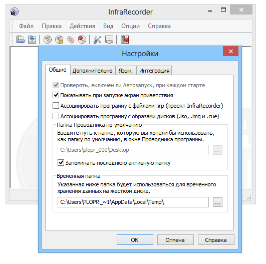 Работа с InfraRecorder
