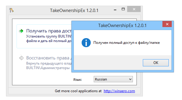 Работа с TakeOwnershipEx
