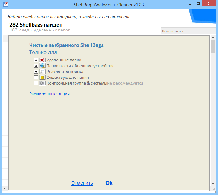 Использование утилиты простое и интуитивно понятное. После запуска достаточно нажать кнопку «Анализ», чтобы программа начала сканирование реестра на наличие ShellBag-записей. Через несколько секунд пользователю будет представлен полный список папок, к которым был доступ, включая полный путь и даты последнего изменения или открытия. Далее можно выбрать, какие именно записи необходимо сохранить, а какие — удалить. После подтверждения очистки данные надежно удаляются, включая атрибуты ветвей реестра.