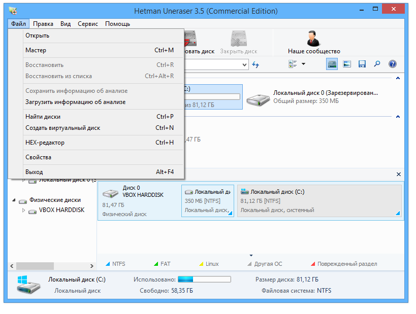 - Hetman Uneraser понимает множество форматов и структур файловых систем: FAT, NTFS, exFAT и другие.