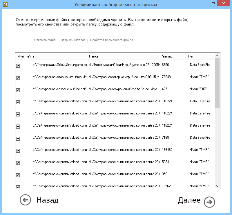 - Программа автоматически сканирует выбранные диски на наличие временных файлов, кэша и логов