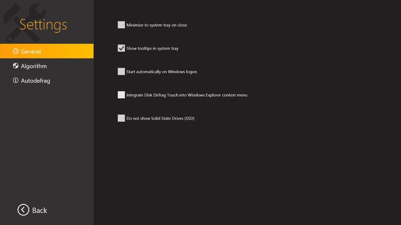 Auslogics Disk Defrag Touch — это оптимизированная версия популярного дефрагментатора дисков, адаптированная для использования на устройствах с сенсорными экранами. Программа сочетает в себе простоту управления и эффективность в восстановлении быстродействия жестких дисков. Её интерфейс напоминает современные плиточные ОС, что делает навигацию интуитивно понятной.